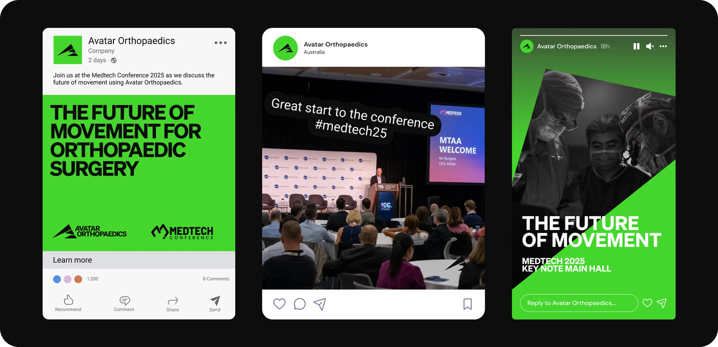 Our initial explorations were refined through pitching and investor habits, we ensured the brand would resonate with both the industry and its audience. Through continuous iteration and collaboration, Storytale crafted a brand for Avatar that embodied the heart of an athlete while remaining strong, trustworthy, and supportive—perfectly aligned with orthopaedic surgeons and their patients.